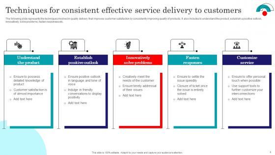 This techniques of delivery sustain service ppt powerpoint presentation complete deck with slides acts as backup support for your ideas, vision, thoughts, etc. Use it to present a thorough understanding of the topic. This PPT slideshow can be utilized for both in-house and outside presentations depending upon your needs and business demands. Entailing twelve slides with a consistent design and theme, this template will make a solid use case. As it is intuitively designed, it suits every business vertical and industry. All you have to do is make a few tweaks in the content or any other component to design unique presentations. The biggest advantage of this complete deck is that it can be personalized multiple times once downloaded. The color, design, shapes, and other elements are free to modify to add personal touches. You can also insert your logo design in this PPT layout. Therefore a well-thought and crafted presentation can be delivered with ease and precision by downloading this techniques of delivery sustain service ppt powerpoint presentation complete deck with slides PPT slideshow.
