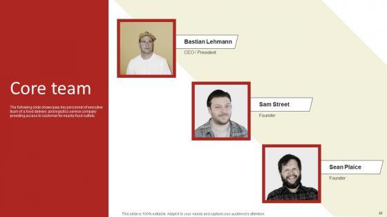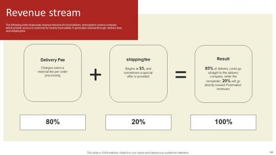 Share a great deal of information on the topic by deploying this Online Food Delivery Startup Ppt PowerPoint Presentation Complete Deck With Slides. Support your ideas and thought process with this prefabricated set. It includes a set of twelve slides, all fully modifiable and editable. Each slide can be restructured and induced with the information and content of your choice. You can add or remove large content boxes as well, to make this PPT slideshow more personalized. Its high-quality graphics and visuals help in presenting a well-coordinated pitch. This PPT template is also a resourceful tool to take visual cues from and implement the best ideas to help your business grow and expand. The main attraction of this well-formulated deck is that everything is editable, giving you the freedom to adjust it to your liking and choice. Changes can be made in the background and theme as well to deliver an outstanding pitch. Therefore, click on the download button now to gain full access to this multifunctional set.