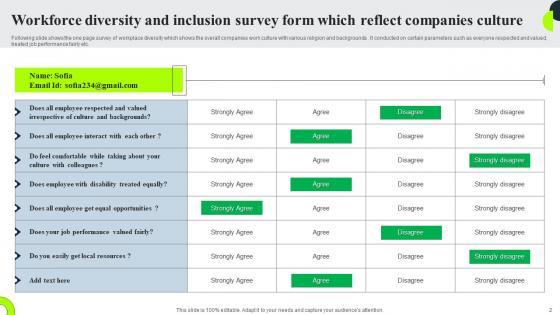 Improve your presentation delivery using this Workforce Diversity And Inclusion Survey Ppt Powerpoint Presentation Complete Deck With Slides Survey Support your business vision and objectives using this well-structured PPT deck. This template offers a great starting point for delivering beautifully designed presentations on the topic of your choice. Comprising four this professionally designed template is all you need to host discussion and meetings with collaborators. Each slide is self-explanatory and equipped with high-quality graphics that can be adjusted to your needs. Therefore, you will face no difficulty in portraying your desired content using this PPT slideshow. This PowerPoint slideshow contains every important element that you need for a great pitch. It is not only editable but also available for immediate download and utilization. The color, font size, background, shapes everything can be modified to create your unique presentation layout. Therefore, download it now. Our Workforce Diversity And Inclusion Survey Ppt Powerpoint Presentation Complete Deck With Slides Survey are topically designed to provide an attractive backdrop to any subject. Use them to look like a presentation pro.