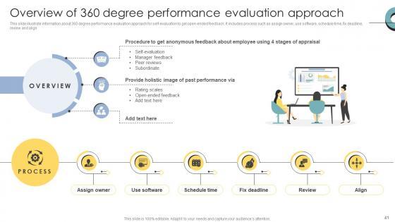Improve your presentation delivery using this 360 Degree Performance Review Ppt PowerPoint Presentation Complete Deck With Slides Support your business vision and objectives using this well-structured PPT deck. This template offers a great starting point for delivering beautifully designed presentations on the topic of your choice. Comprising twenty this professionally designed template is all you need to host discussion and meetings with collaborators. Each slide is self-explanatory and equipped with high-quality graphics that can be adjusted to your needs. Therefore, you will face no difficulty in portraying your desired content using this PPT slideshow. This PowerPoint slideshow contains every important element that you need for a great pitch. It is not only editable but also available for immediate download and utilization. The color, font size, background, shapes everything can be modified to create your unique presentation layout. Therefore, download it now.