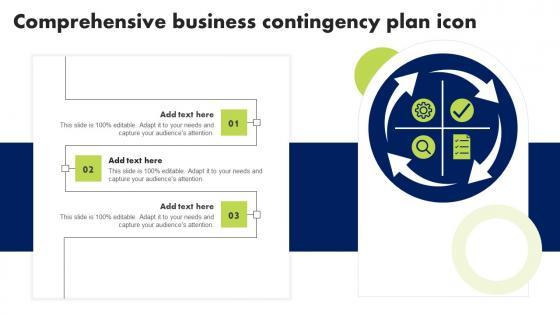 Pitch your topic with ease and precision using this Comprehensive Business Contingency Plan Icon Formats Pdf. This layout presents information on Comprehensive Business, Contingency Plan. It is also available for immediate download and adjustment. So, changes can be made in the color, design, graphics or any other component to create a unique layout. Our Comprehensive Business Contingency Plan Icon Formats Pdf are topically designed to provide an attractive backdrop to any subject. Use them to look like a presentation pro.