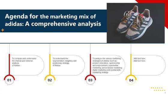 Whether you have daily or monthly meetings, a brilliant presentation is necessary. Agenda For The Marketing Mix Of Adidas A Comprehensive Analysis Strategy SS V can be your best option for delivering a presentation. Represent everything in detail using Agenda For The Marketing Mix Of Adidas A Comprehensive Analysis Strategy SS V and make yourself stand out in meetings. The template is versatile and follows a structure that will cater to your requirements. All the templates prepared by Slidegeeks are easy to download and edit. Our research experts have taken care of the corporate themes as well. So, give it a try and see the results. Our Agenda For The Marketing Mix Of Adidas A Comprehensive Analysis Strategy SS V are topically designed to provide an attractive backdrop to any subject. Use them to look like a presentation pro.