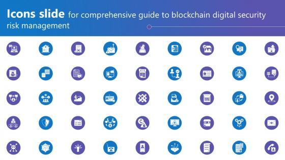 Introducing our well designed Icons Slide For Comprehensive Guide To Blockchain Digital Security Risk Management Professional Pdf set of slides. The slide displays editable icons to enhance your visual presentation. The icons can be edited easily. So customize according to your business to achieve a creative edge. Download and share it with your audience. Our Icons Slide For Comprehensive Guide To Blockchain Digital Security Risk Management Professional Pdf are topically designed to provide an attractive backdrop to any subject. Use them to look like a presentation pro.