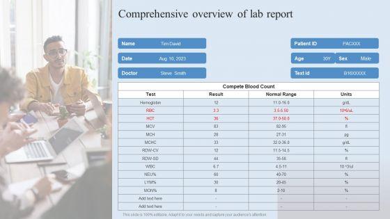 From laying roadmaps to briefing everything in detail, our templates are perfect for you. You can set the stage with your presentation slides. All you have to do is download these easy-to-edit and customizable templates. Comprehensive Overview Of Lab Report Operational Areas Healthcare Elements PDF will help you deliver an outstanding performance that everyone would remember and praise you for. Do download this presentation today. Our Comprehensive Overview Of Lab Report Operational Areas Healthcare Elements PDF are topically designed to provide an attractive backdrop to any subject. Use them to look like a presentation pro.