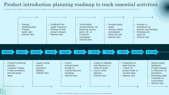 This slide provides information for product launch planning roadmap to determine key tasks involved. The product launch activities include product positioning, launch announcement, manage product launch event, etc. The best PPT templates are a great way to save time, energy, and resources. Slidegeeks have 100 percent editable powerpoint slides making them incredibly versatile. With these quality presentation templates, you can create a captivating and memorable presentation by combining visually appealing slides and effectively communicating your message. Download Product Introduction Planning Roadmap To Track Comprehensive Guide To Product Lifecycle Infographics Pdf from Slidegeeks and deliver a wonderful presentation. This slide provides information for product launch planning roadmap to determine key tasks involved. The product launch activities include product positioning, launch announcement, manage product launch event, etc.