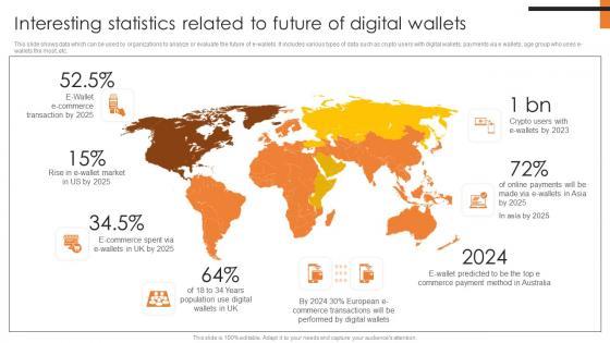 This slide shows data which can be used by organizations to analyze or evaluate the future of e-wallets. It includes various types of data such as crypto users with digital wallets, payments via e wallets, age group who uses e-wallets the most, etc.Slidegeeks has constructed Interesting Statistics Related To Future Of Digital Wallets Comprehensive Smartphone Banking Clipart Pdf after conducting extensive research and examination. These presentation templates are constantly being generated and modified based on user preferences and critiques from editors. Here, you will find the most attractive templates for a range of purposes while taking into account ratings and remarks from users regarding the content. This is an excellent jumping-off point to explore our content and will give new users an insight into our top-notch PowerPoint Templates. This slide shows data which can be used by organizations to analyze or evaluate the future of e wallets. It includes various types of data such as crypto users with digital wallets, payments via e wallets, age group who uses e wallets the most, etc.