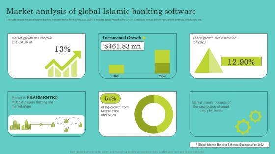 This slide depicts the global Islamic banking software market for the year 2020 to 2024. It includes details related to the CAGR Compound annual growth rate, growth analysis, smart cards, etc. Whether you have daily or monthly meetings, a brilliant presentation is necessary. Market Analysis Of Global Islamic Banking Software Comprehensive Guide To Islamic Download Pdf can be your best option for delivering a presentation. Represent everything in detail using Market Analysis Of Global Islamic Banking Software Comprehensive Guide To Islamic Download Pdf and make yourself stand out in meetings. The template is versatile and follows a structure that will cater to your requirements. All the templates prepared by Slidegeeks are easy to download and edit. Our research experts have taken care of the corporate themes as well. So, give it a try and see the results. This slide depicts the global Islamic banking software market for the year 2020 to 2024. It includes details related to the CAGR Compound annual growth rate, growth analysis, smart cards, etc.