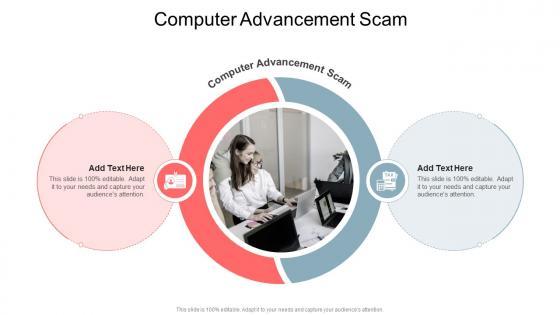 Introducing our well-designed Computer Advancement Scam In Powerpoint And Google Slides Cpb. This PowerPoint design presents information on topics like Computer Advancement Scam. As it is predesigned it helps boost your confidence level. It also makes you a better presenter because of its high-quality content and graphics. This PPT layout can be downloaded and used in different formats like PDF, PNG, and JPG. Not only this, it is available in both Standard Screen and Widescreen aspect ratios for your convenience. Therefore, click on the download button now to persuade and impress your audience. Our Computer Advancement Scam In Powerpoint And Google Slides Cpb are topically designed to provide an attractive backdrop to any subject. Use them to look like a presentation pro.