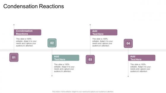 Presenting our innovatively designed set of slides titled Condensation Reactions In Powerpoint And Google Slides Cpb. This completely editable PowerPoint graphic exhibits Condensation Reactions that will help you convey the message impactfully. It can be accessed with Google Slides and is available in both standard screen and widescreen aspect ratios. Apart from this, you can download this well structured PowerPoint template design in different formats like PDF, JPG, and PNG. So, click the download button now to gain full access to this PPT design. Our Condensation Reactions In Powerpoint And Google Slides Cpb are topically designed to provide an attractive backdrop to any subject. Use them to look like a presentation pro.