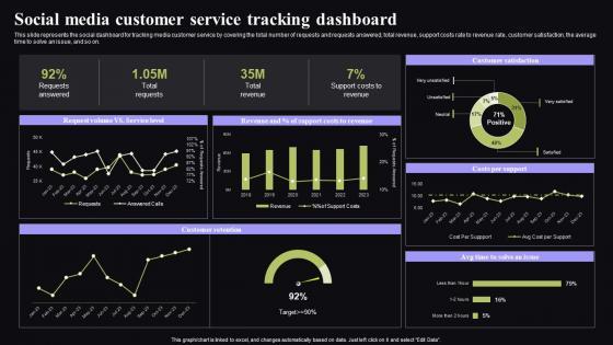 This slide represents the social dashboard for tracking media customer service by covering the total number of requests and requests answered, total revenue, support costs rate to revenue rate, customer satisfaction, the average time to solve an issue, and so on. Presenting this PowerPoint presentation, titled Social Media Customer Service Tracking Dashboard Video Conferencing In Corporate Elements Pdf, with topics curated by our researchers after extensive research. This editable presentation is available for immediate download and provides attractive features when used. Download now and captivate your audience. Presenting this Social Media Customer Service Tracking Dashboard Video Conferencing In Corporate Elements Pdf. Our researchers have carefully researched and created these slides with all aspects taken into consideration. This is a completely customizable Social Media Customer Service Tracking Dashboard Video Conferencing In Corporate Elements Pdf that is available for immediate downloading. Download now and make an impact on your audience. Highlight the attractive features available with our PPTs. This slide represents the social dashboard for tracking media customer service by covering the total number of requests and requests answered, total revenue, support costs rate to revenue rate, customer satisfaction, the average time to solve an issue, and so on.