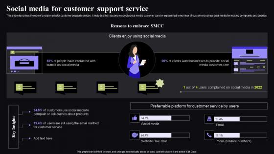 This slide describes the use of social media for customer support services. It includes the reasons to adopt social media customer care by explaining the number of customers using social media for making complaints and queries. Here you can discover an assortment of the finest PowerPoint and Google Slides templates. With these templates, you can create presentations for a variety of purposes while simultaneously providing your audience with an eye-catching visual experience. Download Social Media For Customer Support Service Video Conferencing In Corporate Sample Pdf to deliver an impeccable presentation. These templates will make your job of preparing presentations much quicker, yet still, maintain a high level of quality. Slidegeeks has experienced researchers who prepare these templates and write high-quality content for you. Later on, you can personalize the content by editing the Social Media For Customer Support Service Video Conferencing In Corporate Sample Pdf. This slide describes the use of social media for customer support services. It includes the reasons to adopt social media customer care by explaining the number of customers using social media for making complaints and queries.