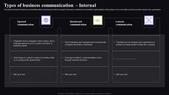 This slide describes the internal communication within a business and caters to upward, downward, and lateral communication. Implementation of these types of communication can have a positive impact on the organization. Create an editable Types Of Business Communication Internal Video Conferencing In Corporate Topics Pdf that communicates your idea and engages your audience. Whether you are presenting a business or an educational presentation, pre-designed presentation templates help save time. Types Of Business Communication Internal Video Conferencing In Corporate Topics Pdf is highly customizable and very easy to edit, covering many different styles from creative to business presentations. Slidegeeks has creative team members who have crafted amazing templates. So, go and get them without any delay. This slide describes the internal communication within a business and caters to upward, downward, and lateral communication. Implementation of these types of communication can have a positive impact on the organization.
