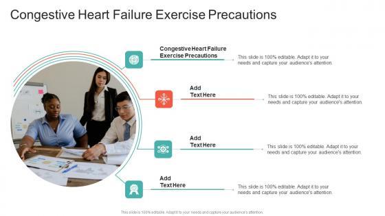 Presenting our innovatively designed set of slides titled Congestive Heart Failure Exercise Precautions In Powerpoint And Google Slides Cpb This completely editable PowerPoint graphic exhibits Congestive Heart Failure Exercise Precautions that will help you convey the message impactfully. It can be accessed with Google Slides and is available in both standard screen and widescreen aspect ratios. Apart from this, you can download this well structured PowerPoint template design in different formats like PDF, JPG, and PNG. So, click the download button now to gain full access to this PPT design. Our Congestive Heart Failure Exercise Precautions In Powerpoint And Google Slides Cpb are topically designed to provide an attractive backdrop to any subject. Use them to look like a presentation pro.