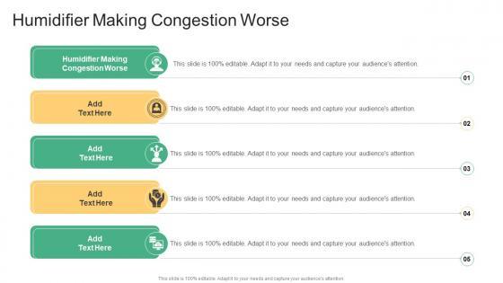 Introducing our well designed Humidifier Making Congestion Worse In Powerpoint And Google Slides Cpb. This PowerPoint design presents information on topics like Humidifier Making Congestion Worse. As it is predesigned it helps boost your confidence level. It also makes you a better presenter because of its high quality content and graphics. This PPT layout can be downloaded and used in different formats like PDF, PNG, and JPG. Not only this, it is available in both Standard Screen and Widescreen aspect ratios for your convenience. Therefore, click on the download button now to persuade and impress your audience. Our Humidifier Making Congestion Worse In Powerpoint And Google Slides Cpb are topically designed to provide an attractive backdrop to any subject. Use them to look like a presentation pro.