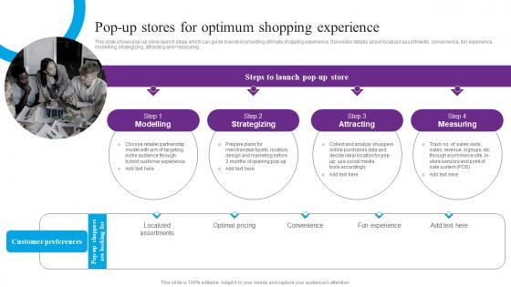 This slide shows pop up store launch steps which can guide brands in providing ultimate shopping experience. It provides details about localized assortments, convenience, fun experience, modelling, strategizing, attracting and measuring. This modern and well arranged Pop Up Stores For Optimum Centric Marketing To Enhance Brand Connections Clipart Pdf provides lots of creative possibilities. It is very simple to customize and edit with the Powerpoint Software. Just drag and drop your pictures into the shapes. All facets of this template can be edited with Powerpoint, no extra software is necessary. Add your own material, put your images in the places assigned for them, adjust the colors, and then you can show your slides to the world, with an animated slide included. This slide shows pop up store launch steps which can guide brands in providing ultimate shopping experience. It provides details about localized assortments, convenience, fun experience, modelling, strategizing, attracting and measuring.