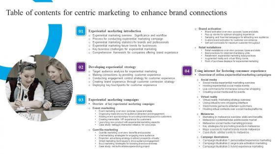 Boost your pitch with our creative Table Of Contents For Centric Marketing To Enhance Brand Connections Slides Pdf. Deliver an awe inspiring pitch that will mesmerize everyone. Using these presentation templates you will surely catch everyones attention. You can browse the ppts collection on our website. We have researchers who are experts at creating the right content for the templates. So you do not have to invest time in any additional work. Just grab the template now and use them. Our Table Of Contents For Centric Marketing To Enhance Brand Connections Slides Pdf are topically designed to provide an attractive backdrop to any subject. Use them to look like a presentation pro.