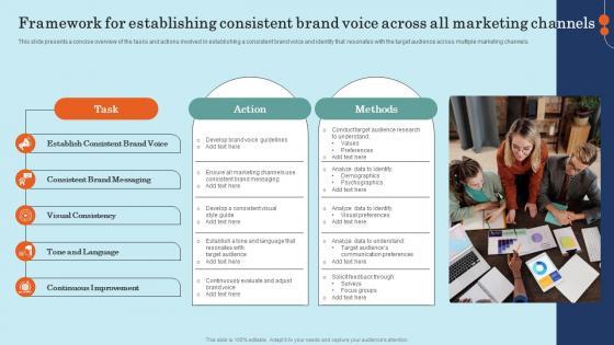 This slide presents a concise overview of the tasks and actions involved in establishing a consistent brand voice and identity that resonates with the target audience across multiple marketing channels. Are you in need of a template that can accommodate all of your creative concepts This one is crafted professionally and can be altered to fit any style. Use it with Google Slides or PowerPoint. Include striking photographs, symbols, depictions, and other visuals. Fill, move around, or remove text boxes as desired. Test out color palettes and font mixtures. Edit and save your work, or work with colleagues. Download Framework For Establishing Consistent Brand Voice Across Effective General Insurance Marketing Designs Pdf and observe how to make your presentation outstanding. Give an impeccable presentation to your group and make your presentation unforgettable. This slide presents a concise overview of the tasks and actions involved in establishing a consistent brand voice and identity that resonates with the target audience across multiple marketing channels.