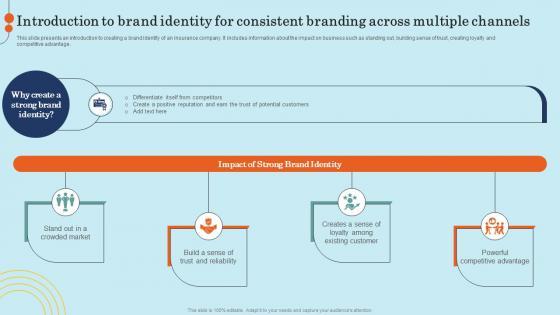 This slide presents an introduction to creating a brand identity of an insurance company. It includes information about the impact on business such as standing out, building sense of trust, creating loyalty and competitive advantage.Create an editable Introduction To Brand Identity For Consistent Branding Effective General Insurance Marketing Icons Pdf that communicates your idea and engages your audience. Whether you are presenting a business or an educational presentation, pre-designed presentation templates help save time. Introduction To Brand Identity For Consistent Branding Effective General Insurance Marketing Icons Pdf is highly customizable and very easy to edit, covering many different styles from creative to business presentations. Slidegeeks has creative team members who have crafted amazing templates. So, go and get them without any delay. This slide presents an introduction to creating a brand identity of an insurance company. It includes information about the impact on business such as standing out, building sense of trust, creating loyalty and competitive advantage.
