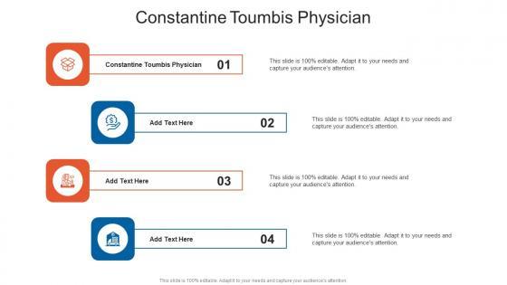 Introducing our well-designed Constantine Toumbis Physician In Powerpoint And Google Slides Cpb. This PowerPoint design presents information on topics like Constantine Toumbis Physician. As it is predesigned it helps boost your confidence level. It also makes you a better presenter because of its high-quality content and graphics. This PPT layout can be downloaded and used in different formats like PDF, PNG, and JPG. Not only this, it is available in both Standard Screen and Widescreen aspect ratios for your convenience. Therefore, click on the download button now to persuade and impress your audience. Our Constantine Toumbis Physician In Powerpoint And Google Slides Cpb are topically designed to provide an attractive backdrop to any subject. Use them to look like a presentation pro.