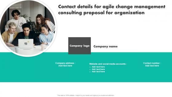 Elevate your presentations with our intuitive Contact Details For Agile Change Management Consulting Proposal For Organization Microsoft PDF template. Whether you are delivering a pitch, sharing data, or presenting ideas, our visually-stunning single-slide PPT template is the perfect tool to captivate your audience. With 100 percent editable features and a user-friendly interface, creating professional presentations has never been easier. Download now and leave a lasting impression. Our Contact Details For Agile Change Management Consulting Proposal For Organization Microsoft PDF are topically designed to provide an attractive backdrop to any subject. Use them to look like a presentation pro.