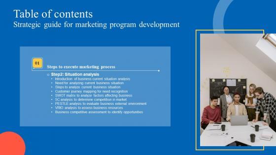 If your project calls for a presentation, then Slidegeeks is your go to partner because we have professionally designed, easy to edit templates that are perfect for any presentation. After downloading, you can easily edit Strategic Guide For Marketing Program Table Of Contents Microsoft Pdf and make the changes accordingly. You can rearrange slides or fill them with different images. Check out all the handy templates Our Strategic Guide For Marketing Program Table Of Contents Microsoft Pdf are topically designed to provide an attractive backdrop to any subject. Use them to look like a presentation pro.