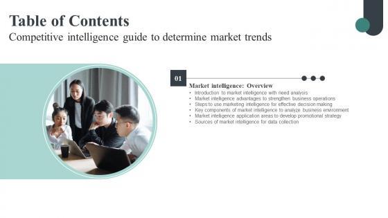 Presenting this PowerPoint presentation, titled Competitive Intelligence Guide To Determine Market Trends For Table Of Contents Themes Pdf, with topics curated by our researchers after extensive research. This editable presentation is available for immediate download and provides attractive features when used. Download now and captivate your audience. Presenting this Competitive Intelligence Guide To Determine Market Trends For Table Of Contents Themes Pdf. Our researchers have carefully researched and created these slides with all aspects taken into consideration. This is a completely customizable Competitive Intelligence Guide To Determine Market Trends For Table Of Contents Themes Pdf that is available for immediate downloading. Download now and make an impact on your audience. Highlight the attractive features available with our PPTs. Our Competitive Intelligence Guide To Determine Market Trends For Table Of Contents Themes Pdf are topically designed to provide an attractive backdrop to any subject. Use them to look like a presentation pro.