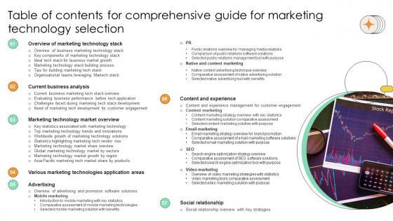 There are so many reasons you need a Table Of Contents Comprehensive Guide For Marketing Technology Selection. The first reason is you can not spend time making everything from scratch, Thus, Slidegeeks has made presentation templates for you too. You can easily download these templates from our website easily. Our Table Of Contents Comprehensive Guide For Marketing Technology Selection are topically designed to provide an attractive backdrop to any subject. Use them to look like a presentation pro.