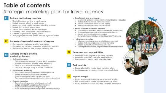 Are you in need of a template that can accommodate all of your creative concepts This one is crafted professionally and can be altered to fit any style. Use it with Google Slides or PowerPoint. Include striking photographs, symbols, depictions, and other visuals. Fill, move around, or remove text boxes as desired. Test out color palettes and font mixtures. Edit and save your work, or work with colleagues. Download Table Of Contents Strategic Marketing Plan For Travel Agency Mockup Pdf and observe how to make your presentation outstanding. Give an impeccable presentation to your group and make your presentation unforgettable. Our Table Of Contents Strategic Marketing Plan For Travel Agency Mockup Pdf are topically designed to provide an attractive backdrop to any subject. Use them to look like a presentation pro.