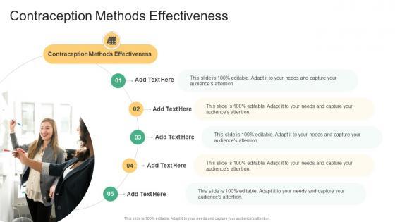 Introducing our well designed Contraception Methods Effectiveness In Powerpoint And Google Slides Cpb. This PowerPoint design presents information on topics like Contraception Methods Effectiveness. As it is predesigned it helps boost your confidence level. It also makes you a better presenter because of its high quality content and graphics. This PPT layout can be downloaded and used in different formats like PDF, PNG, and JPG. Not only this, it is available in both Standard Screen and Widescreen aspect ratios for your convenience. Therefore, click on the download button now to persuade and impress your audience. Our Contraception Methods Effectiveness In Powerpoint And Google Slides Cpb are topically designed to provide an attractive backdrop to any subject. Use them to look like a presentation pro.