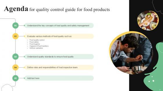 Find a pre-designed and impeccable Agenda For Quality Control Guide For Food Products PPT Slide. The templates can ace your presentation without additional effort. You can download these easy-to-edit presentation templates to make your presentation stand out from others. So, what are you waiting for Download the template from Slidegeeks today and give a unique touch to your presentation. Our Agenda For Quality Control Guide For Food Products PPT Slide are topically designed to provide an attractive backdrop to any subject. Use them to look like a presentation pro.