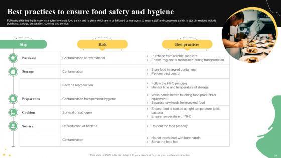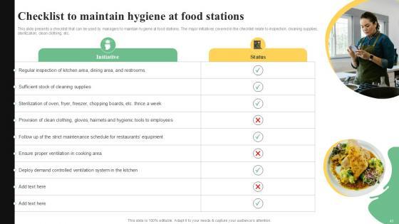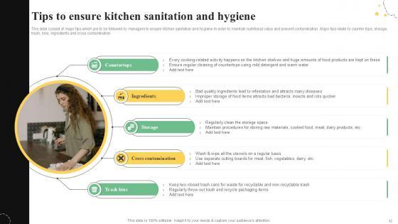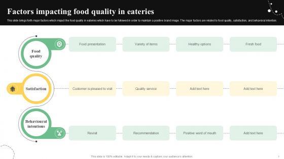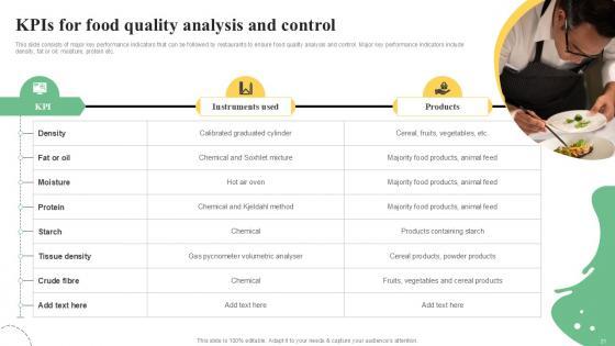The slide covers KPIs that can be used to track and evaluate the quality of food and services for continuous improvement. Major metrics are customer complaint rate, food waste percentage, etc.Explore a selection of the finest Kpis To Control Food Product Quality And Product Service Hygiene here. With a plethora of professionally designed and pre-made slide templates, you can quickly and easily find the right one for your upcoming presentation. You can use our Kpis To Control Food Product Quality And Product Service Hygiene to effectively convey your message to a wider audience. Slidegeeks has done a lot of research before preparing these presentation templates. The content can be personalized and the slides are highly editable. Grab templates today from Slidegeeks. The slide covers KPIs that can be used to track and evaluate the quality of food and services for continuous improvement. Major metrics are customer complaint rate, food waste percentage, etc.