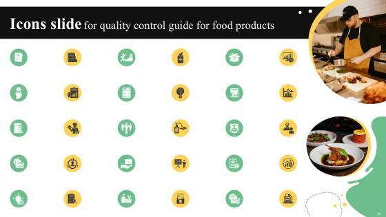 Help your business to create an attention-grabbing presentation using our Icons Slide For Quality Control Guide For Food Products PPT Example set of slides. The slide contains innovative icons that can be flexibly edited. Choose this Icons Slide For Quality Control Guide For Food Products PPT Example template to create a satisfactory experience for your customers. Go ahead and click the download button. Our Icons Slide For Quality Control Guide For Food Products PPT Example are topically designed to provide an attractive backdrop to any subject. Use them to look like a presentation pro.