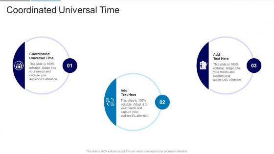 Introducing our well designed Coordinated Universal Time In Powerpoint And Google Slides Cpb. This PowerPoint design presents information on topics like Coordinated Universal Time. As it is predesigned it helps boost your confidence level. It also makes you a better presenter because of its high quality content and graphics. This PPT layout can be downloaded and used in different formats like PDF, PNG, and JPG. Not only this, it is available in both Standard Screen and Widescreen aspect ratios for your convenience. Therefore, click on the download button now to persuade and impress your audience. Our Coordinated Universal Time In Powerpoint And Google Slides Cpb are topically designed to provide an attractive backdrop to any subject. Use them to look like a presentation pro.