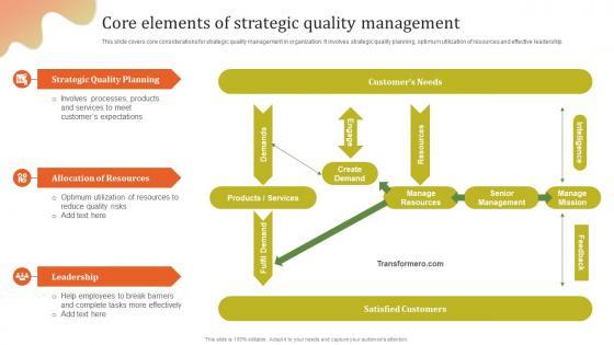 This slide covers core considerations for strategic quality management in organization. It involves strategic quality planning, optimum utilization of resources and effective leadership. Get a simple yet stunning designed Core Elements Of Strategic Executing Effective Quality Enhancement Clipart Pdf. It is the best one to establish the tone in your meetings. It is an excellent way to make your presentations highly effective. So, download this PPT today from Slidegeeks and see the positive impacts. Our easy to edit Core Elements Of Strategic Executing Effective Quality Enhancement Clipart Pdf can be your go to option for all upcoming conferences and meetings. So, what are you waiting for Grab this template today. This slide covers core considerations for strategic quality management in organization. It involves strategic quality planning, optimum utilization of resources and effective leadership.