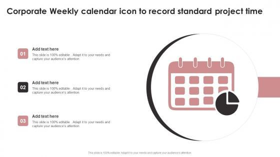 Pitch your topic with ease and precision using this Corporate Weekly Calendar Icon To Record Standard Project Time Template Pdf. This layout presents information on Corporate Weekly Calendar Icon, Record Standard Project Time. It is also available for immediate download and adjustment. So, changes can be made in the color, design, graphics or any other component to create a unique layout. Our Corporate Weekly Calendar Icon To Record Standard Project Time Template Pdf are topically designed to provide an attractive backdrop to any subject. Use them to look like a presentation pro.