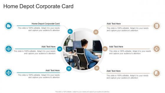 Introducing our well-designed Home Depot Corporate Card In Powerpoint And Google Slides Cpb. This PowerPoint design presents information on topics like Home Depot Corporate Card. As it is predesigned it helps boost your confidence level. It also makes you a better presenter because of its high-quality content and graphics. This PPT layout can be downloaded and used in different formats like PDF, PNG, and JPG. Not only this, it is available in both Standard Screen and Widescreen aspect ratios for your convenience. Therefore, click on the download button now to persuade and impress your audience. Our Home Depot Corporate Card In Powerpoint And Google Slides Cpb are topically designed to provide an attractive backdrop to any subject. Use them to look like a presentation pro.