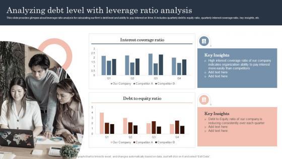 This slide provides glimpse about leverage ratio analysis for calculating our firms debt level and ability to pay interest on time. It includes quarterly debt to equity ratio, quarterly interest coverage ratio, key insights, etc. There are so many reasons you need a Analyzing Debt Level With Leverage Ratio Analysis Assessing Corporate Financial Techniques Designs Pdf. The first reason is you can not spend time making everything from scratch, Thus, Slidegeeks has made presentation templates for you too. You can easily download these templates from our website easily. This slide provides glimpse about leverage ratio analysis for calculating our firms debt level and ability to pay interest on time. It includes quarterly debt to equity ratio, quarterly interest coverage ratio, key insights, etc.