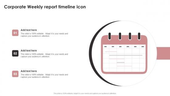 Pitch your topic with ease and precision using this Corporate Weekly Report Timeline Icon Pictures Pdf. This layout presents information on Corporate Weekly Report, Timeline Icon. It is also available for immediate download and adjustment. So, changes can be made in the color, design, graphics or any other component to create a unique layout. Our Corporate Weekly Report Timeline Icon Pictures Pdf are topically designed to provide an attractive backdrop to any subject. Use them to look like a presentation pro.