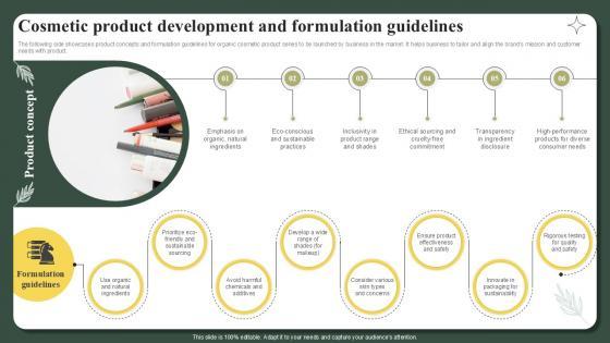 The following side showcases product concepts and formulation guidelines for organic cosmetic product series to be launched by business in the market. It helps business to tailor and align the brands mission and customer needs with product. Do you have an important presentation coming up Are you looking for something that will make your presentation stand out from the rest Look no further than Cosmetic Product Development And Formulation Guidelines Successful Launch Ppt Example With our professional designs, you can trust that your presentation will pop and make delivering it a smooth process. And with Slidegeeks, you can trust that your presentation will be unique and memorable. So why wait Grab Cosmetic Product Development And Formulation Guidelines Successful Launch Ppt Example today and make your presentation stand out from the rest The following side showcases product concepts and formulation guidelines for organic cosmetic product series to be launched by business in the market. It helps business to tailor and align the brands mission and customer needs with product.