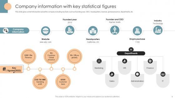 This slide gives a brief introduction about the company including key facts such as founding year, CEO, headquarters, revenue, global presence, departments, etc.Slidegeeks is here to make your presentations a breeze with Company Information With Key Statistical Figures Office Process Optimization To Increase Cost Efficiency With our easy-to-use and customizable templates, you can focus on delivering your ideas rather than worrying about formatting. With a variety of designs to choose from, you are sure to find one that suits your needs. And with animations and unique photos, illustrations, and fonts, you can make your presentation pop. So whether you are giving a sales pitch or presenting to the board, make sure to check out Slidegeeks first This slide gives a brief introduction about the company including key facts such as founding year, CEO, headquarters, revenue, global presence, departments, etc.