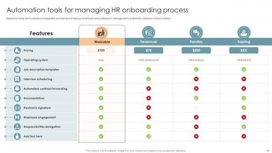 Mentioned slide demonstrates comparative assessment of various employee onboarding and management solutions for selection of best solution. Want to ace your presentation in front of a live audience Our Automation Tools For Managing Hr Onboarding Process Office Process Optimization To Increase Cost Efficiency can help you do that by engaging all the users towards you. Slidegeeks experts have put their efforts and expertise into creating these impeccable powerpoint presentations so that you can communicate your ideas clearly. Moreover, all the templates are customizable, and easy-to-edit and downloadable. Use these for both personal and commercial use. Mentioned slide demonstrates comparative assessment of various employee onboarding and management solutions for selection of best solution.