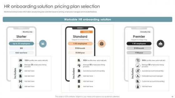 Mentioned slide provides information about pricing plan selection based on pricing, employees managed, and included features.Crafting an eye-catching presentation has never been more straightforward. Let your presentation shine with this tasteful yet straightforward Hr Onboarding Solution Pricing Plan Selection Office Process Optimization To Increase Cost Efficiency template. It offers a minimalistic and classy look that is great for making a statement. The colors have been employed intelligently to add a bit of playfulness while still remaining professional. Construct the ideal Hr Onboarding Solution Pricing Plan Selection Office Process Optimization To Increase Cost Efficiency that effortlessly grabs the attention of your audience Begin now and be certain to wow your customers Mentioned slide provides information about pricing plan selection based on pricing, employees managed, and included features.