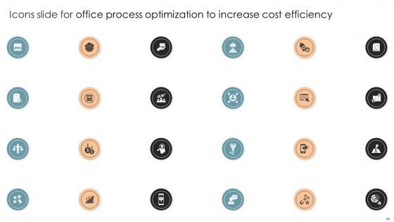 Introducing our well designed Icons Slide For Office Process Optimization To Increase Cost Efficiency set of slides. The slide displays editable icons to enhance your visual presentation. The icons can be edited easily. So customize according to your business to achieve a creative edge. Download and share it with your audience. Our Icons Slide For Office Process Optimization To Increase Cost Efficiency are topically designed to provide an attractive backdrop to any subject. Use them to look like a presentation pro.