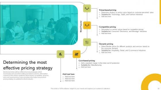 This template covers the first strategy for price optimization i.e markup pricing along with advantages and disadvantages of choosing this strategy. This modern and well arranged Complete Guide To Product Pricing Techniques Strategy 1 Cost Plus Pricing Structure PDF provides lots of creative possibilities. It is very simple to customize and edit with the Powerpoint Software. Just drag and drop your pictures into the shapes. All facets of this template can be edited with Powerpoint no extra software is necessary. Add your own material, put your images in the places assigned for them, adjust the colors, and then you can show your slides to the world, with an animated slide included.