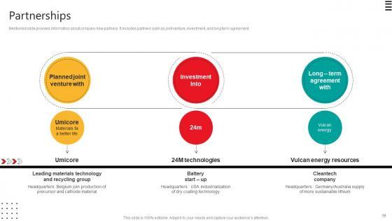 Mentioned slide provides information about company new partners. It includes partners such as joint venture, investment, and long term agreement.Presenting this PowerPoint presentation, titled Partnerships Automobile Development Company Profile CP SS V, with topics curated by our researchers after extensive research. This editable presentation is available for immediate download and provides attractive features when used. Download now and captivate your audience. Presenting this Partnerships Automobile Development Company Profile CP SS V. Our researchers have carefully researched and created these slides with all aspects taken into consideration. This is a completely customizable Partnerships Automobile Development Company Profile CP SS V that is available for immediate downloading. Download now and make an impact on your audience. Highlight the attractive features available with our PPTs. Mentioned slide provides information about company new partners. It includes partners such as joint venture, investment, and long term agreement.