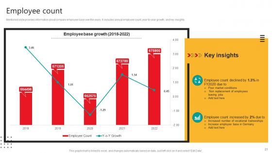 Mentioned slide provides information about company employee base over the years. It includes annual employee count, year-to-year growth, and key insights.Do you have an important presentation coming up Are you looking for something that will make your presentation stand out from the rest Look no further than Employee Count Automobile Development Company Profile CP SS V. With our professional designs, you can trust that your presentation will pop and make delivering it a smooth process. And with Slidegeeks, you can trust that your presentation will be unique and memorable. So why wait Grab Employee Count Automobile Development Company Profile CP SS V today and make your presentation stand out from the rest Mentioned slide provides information about company employee base over the years. It includes annual employee count, year-to-year growth, and key insights.