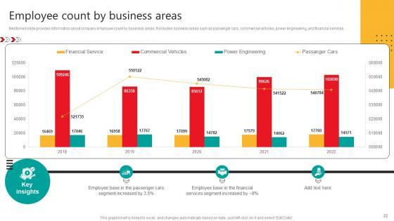 Mentioned slide provides information about company employee count by business areas. It includes business areas such as passenger cars, commercial vehicles, power engineering, and financial services.Whether you have daily or monthly meetings, a brilliant presentation is necessary. Employee Count By Business Areas Automobile Development Company Profile CP SS V can be your best option for delivering a presentation. Represent everything in detail using Employee Count By Business Areas Automobile Development Company Profile CP SS V and make yourself stand out in meetings. The template is versatile and follows a structure that will cater to your requirements. All the templates prepared by Slidegeeks are easy to download and edit. Our research experts have taken care of the corporate themes as well. So, give it a try and see the results. Mentioned slide provides information about company employee count by business areas. It includes business areas such as passenger cars, commercial vehicles, power engineering, and financial services.