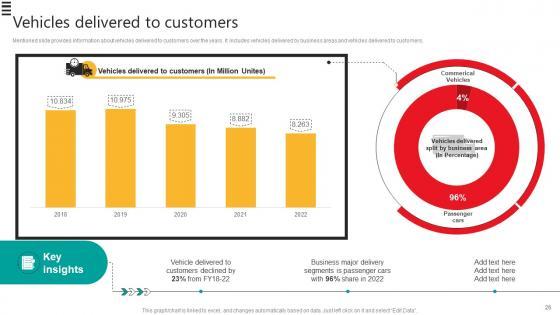 Mentioned slide provides information about vehicles delivered to customers over the years. It includes vehicles delivered by business areas and vehicles delivered to customers. Slidegeeks is here to make your presentations a breeze with Vehicles Delivered To Customers Automobile Development Company Profile CP SS V With our easy-to-use and customizable templates, you can focus on delivering your ideas rather than worrying about formatting. With a variety of designs to choose from, you are sure to find one that suits your needs. And with animations and unique photos, illustrations, and fonts, you can make your presentation pop. So whether you are giving a sales pitch or presenting to the board, make sure to check out Slidegeeks first Mentioned slide provides information about vehicles delivered to customers over the years. It includes vehicles delivered by business areas and vehicles delivered to customers.