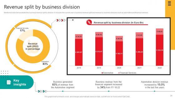 Mentioned slide demonstrates the business revenue split by division. It includes the current years business revenue split and revenue by business divisions such as automotive and financial services.Take your projects to the next level with our ultimate collection of Revenue Split By Business Division Automobile Development Company Profile CP SS V. Slidegeeks has designed a range of layouts that are perfect for representing task or activity duration, keeping track of all your deadlines at a glance. Tailor these designs to your exact needs and give them a truly corporate look with your own brand colors they will make your projects stand out from the rest Mentioned slide demonstrates the business revenue split by division. It includes the current years business revenue split and revenue by business divisions such as automotive and financial services.