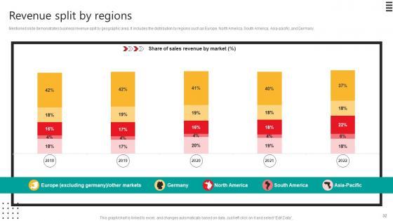 Mentioned slide demonstrates business revenue split by geographic area. It includes the distribution by regions such as Europe. North America, South America, Asia-pacific, and Germany. Do you know about Slidesgeeks Revenue Split By Regions Automobile Development Company Profile CP SS V These are perfect for delivering any kind od presentation. Using it, create PowerPoint presentations that communicate your ideas and engage audiences. Save time and effort by using our pre-designed presentation templates that are perfect for a wide range of topic. Our vast selection of designs covers a range of styles, from creative to business, and are all highly customizable and easy to edit. Download as a PowerPoint template or use them as Google Slides themes. Mentioned slide demonstrates business revenue split by geographic area. It includes the distribution by regions such as Europe. North America, South America, Asia-pacific, and Germany.